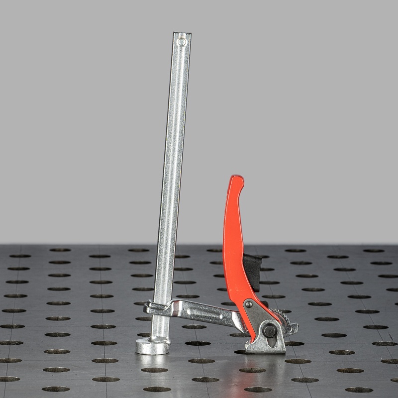 Tato rychloupínací svěrka je navržena pro přesné a efektivní upevnění obrobků přímo na svařovací stoly s rastry 28 mm. Díky výšce 250 mm a kompatibilitě se systémem 28 mm umožňuje stabilní upnutí dílů i při menších konstrukcích.